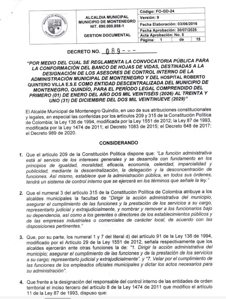 El Hospital Roberto Quintero Villa ESE de conformidad con lo establecido en el Decreto 780 de 2016, artículo 2.10.1.1.11. Constitución de las asociaciones y alianzas de usuarios; se permite convocar a Asamblea de Usuarios a todas las personas que hayan hecho uso de los servicios de la entidad, con el fin de conformar la Asociación de Usuarios y elegir sus representantes ante las diferentes instancias de participación social en salud. LUGAR: Casa de la Cultura FECHA: 4 de Julio de 2025 HORA 10:00 am a 12:00 m